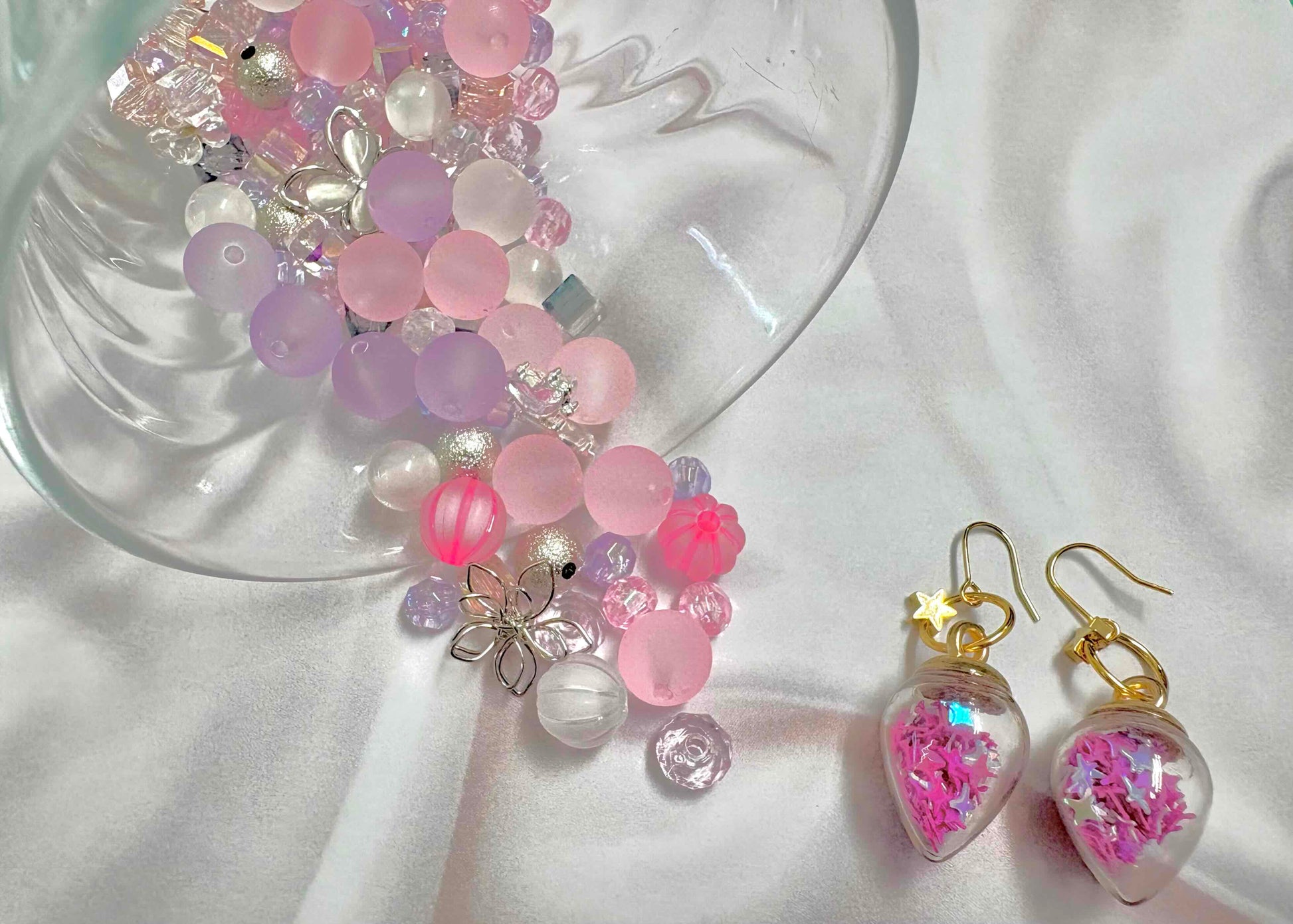 イチゴモチーフのかわいいピアスで、夏のイベントにぴったりのアクセントに。