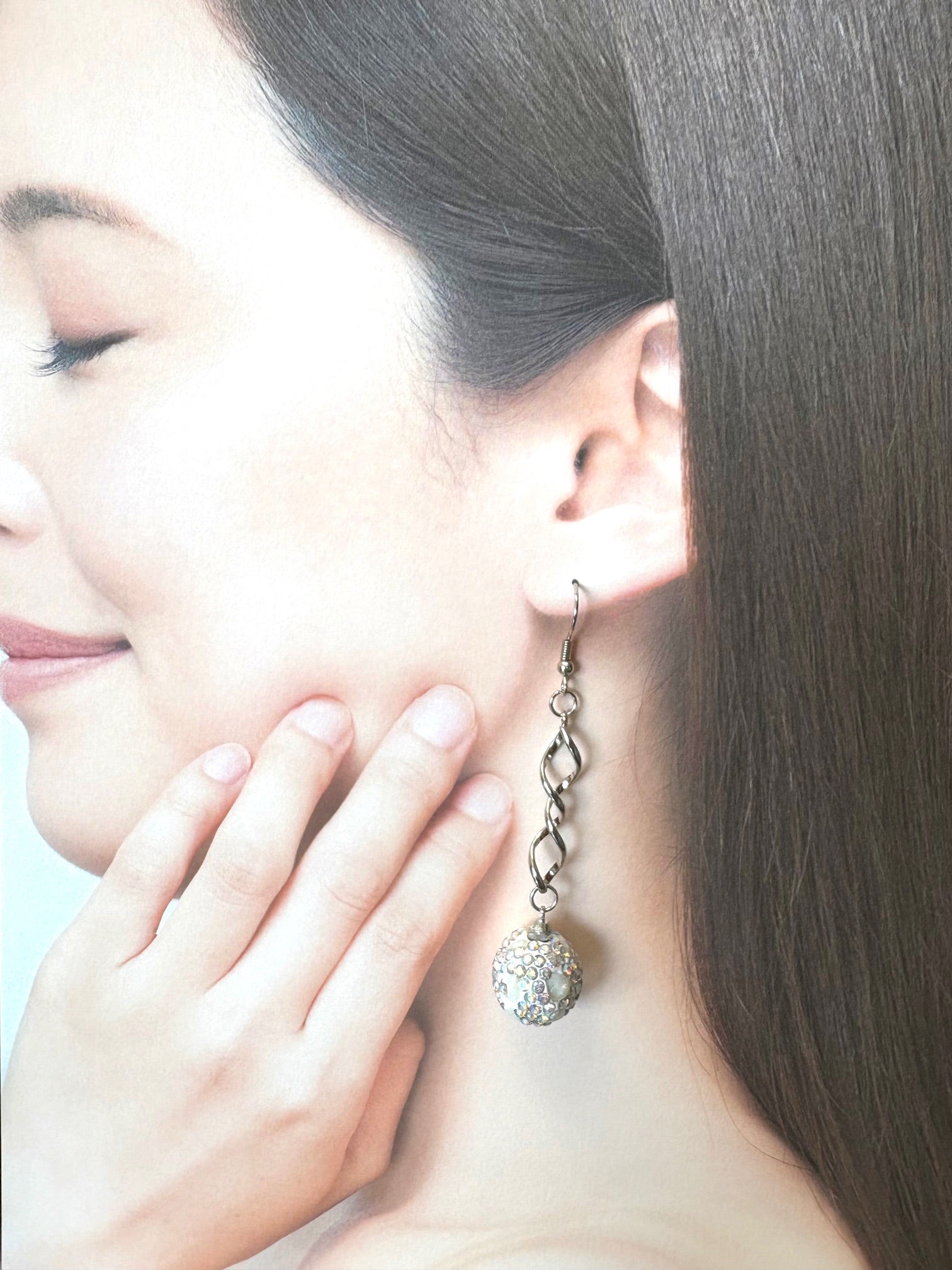 ミラーボール風ピアスは、キラキラ輝く白いデザインにうねうねとした動きが加わり、遊び心あふれるアクセントに。耳元で光を反射して、パーティーやお出かけを一層楽しく彩ります。個性的で目を引くスタイルを楽しみたい方にぴったりのアイテムです。