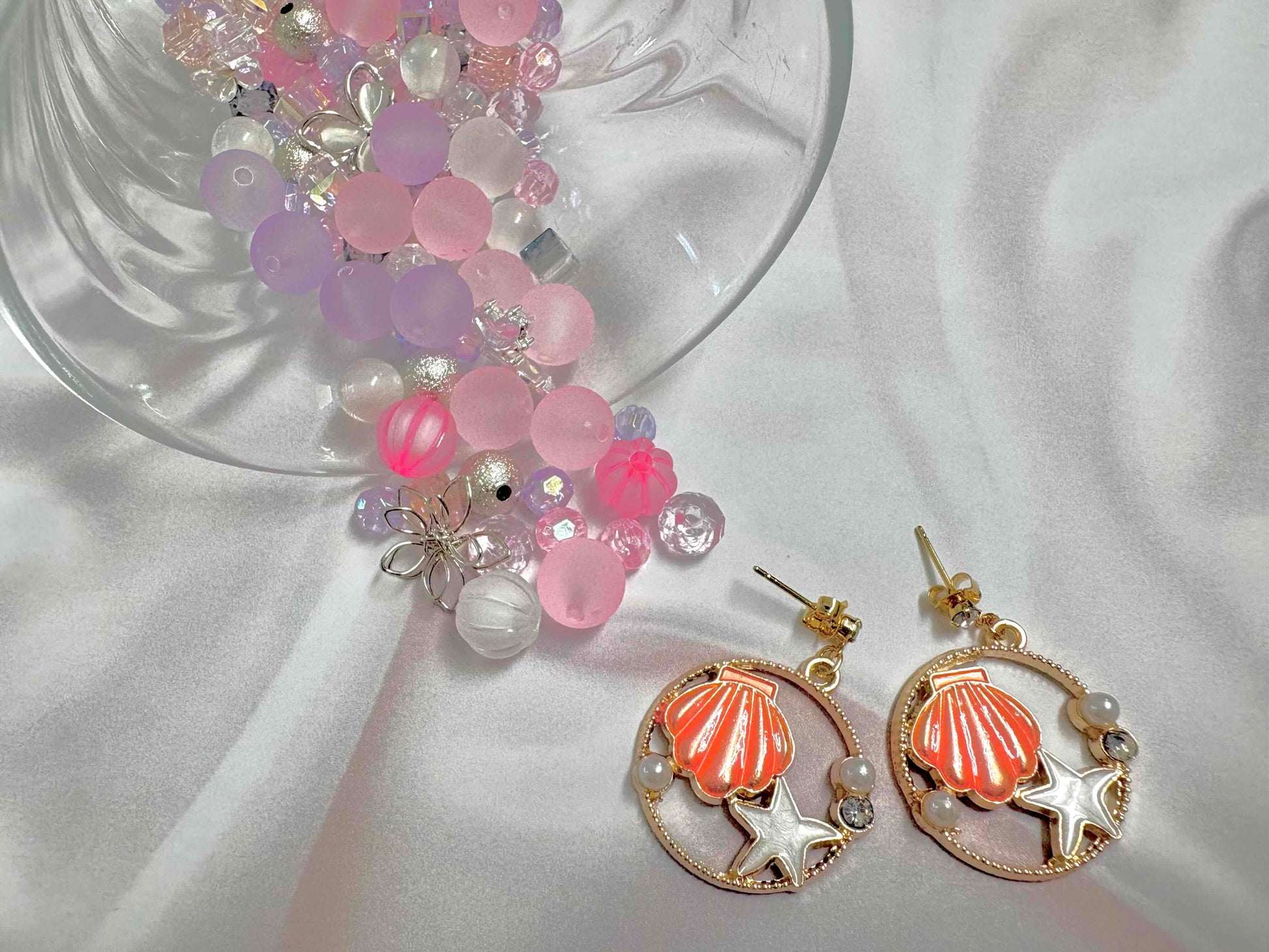 夏の装いにぴったりな貝殻モチーフのピアスです。
